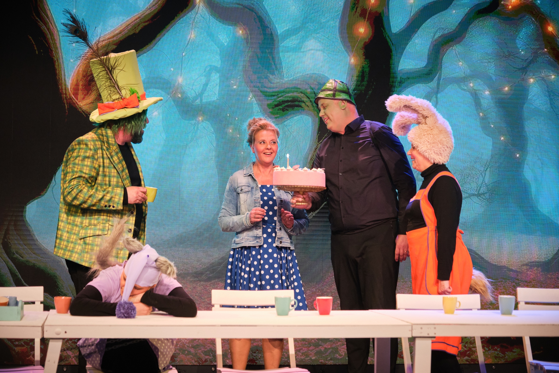 Alice belandt per ongeluk in een heel vreemde wereld, voornamelijk bevolkt door dieren en levenloze objecten als speelkaarten. Ze ontmoet allerlei vreemde wezens en probeert te begrijpen wat haar verteld wordt. Maar dat valt niet mee. Wat voor de bewoners van Wonderland logisch is, is dat voor Alice helemaal niet. Alle ingrediënten voor een bijzondere productie, met veel onzin… Of juist geen onzin…? En was het nou logisch…of juist niet?